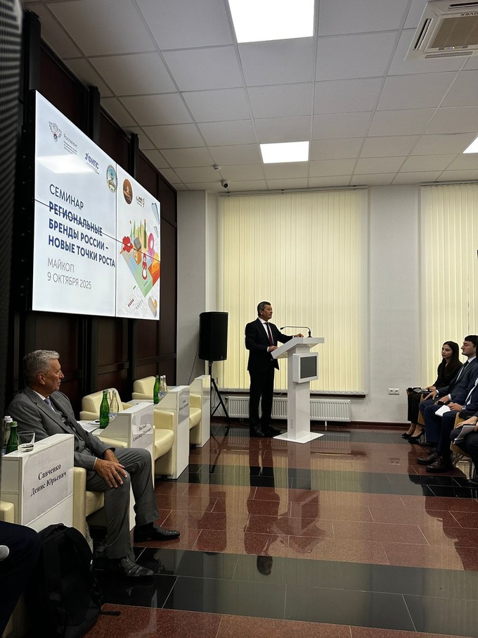 9 октября 2025 года Уполномоченный по защите прав предпринимателей в Республике Адыгея Азамат Конов принял участие в семинаре для предпринимателей Адыгеи «Региональные бренды России – новые точки роста», организованном при содействии Министерства экономического развития и торговли Республики Адыгея.